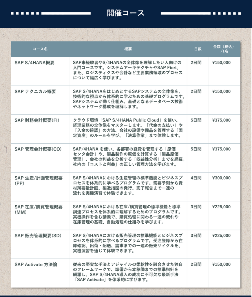 (注)受講価格(金額)に SAP Learning Hub のライセンス料は含まれておりません。